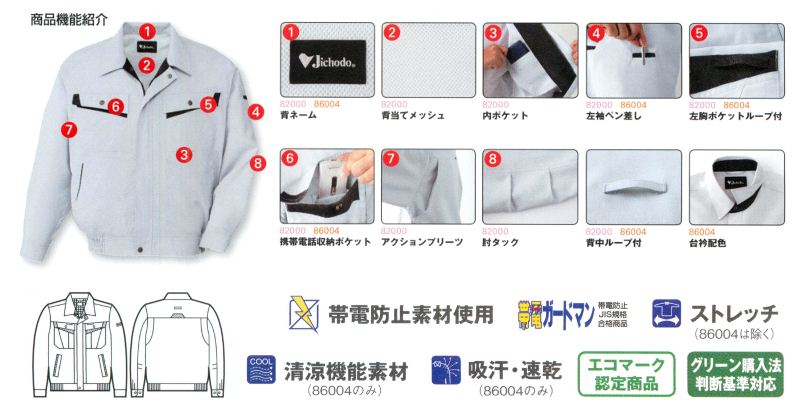 【Jichodo/自重堂 82001】【ポリエステル100%】【作業服/作業着】【パンツ/スラックス】 「エコ」「ストレッチ」「製品制電」。